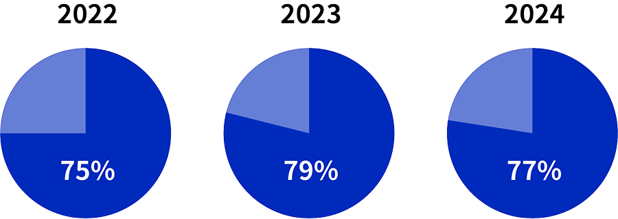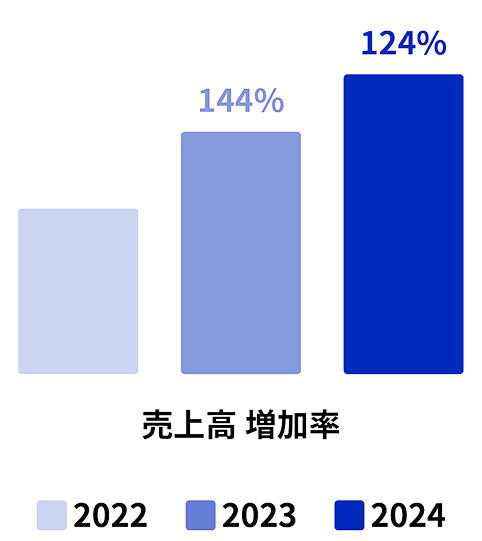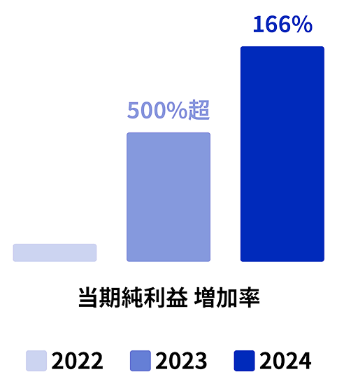 2022年は初年度につき当期純利益が少額のため、2023年の前年比は高くなっていますが、堅調な増加を継続中です。