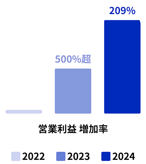 2022年は初年度につき営業利益が少額のため、2023年の前年比は高くなっていますが、堅調な増加を継続中です。